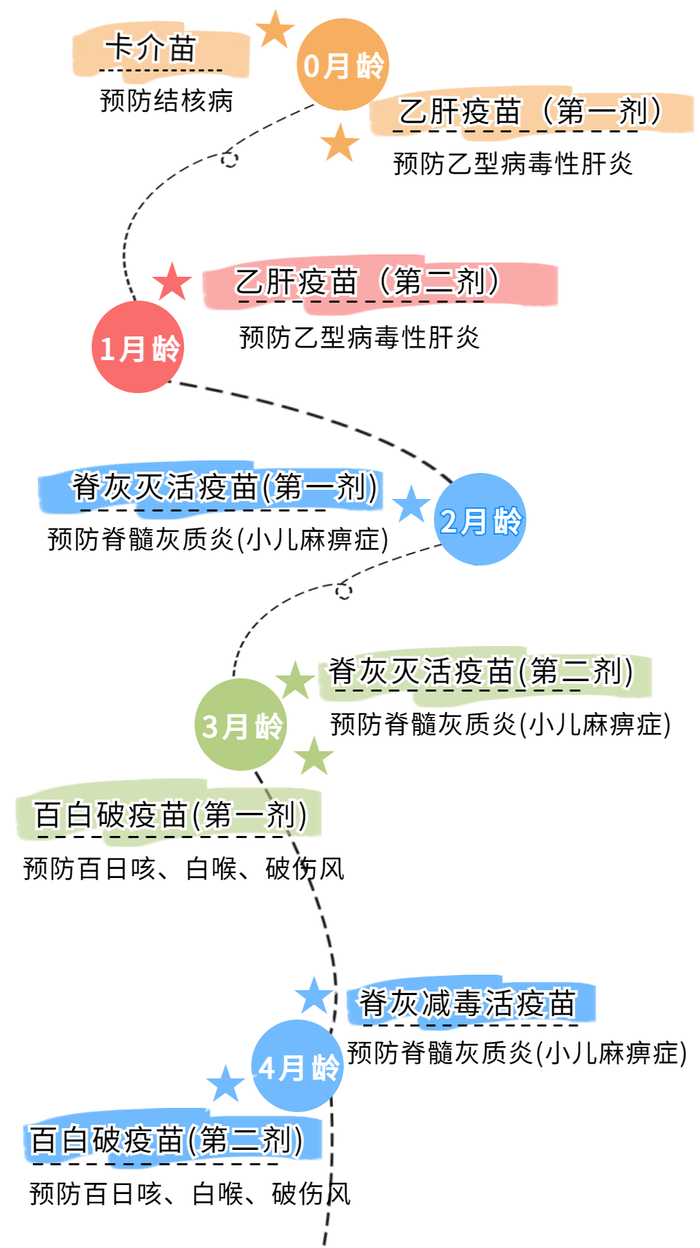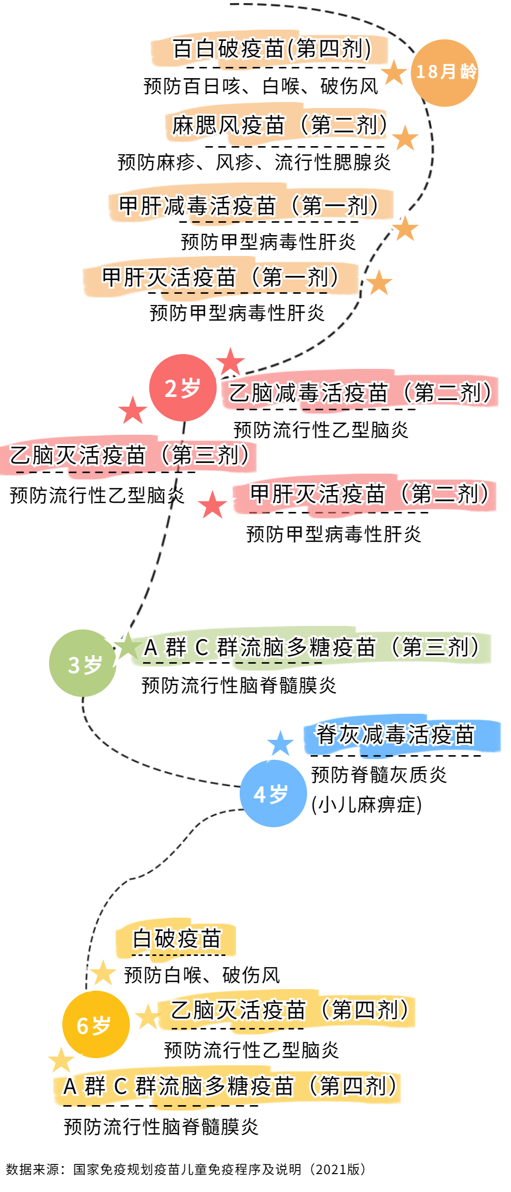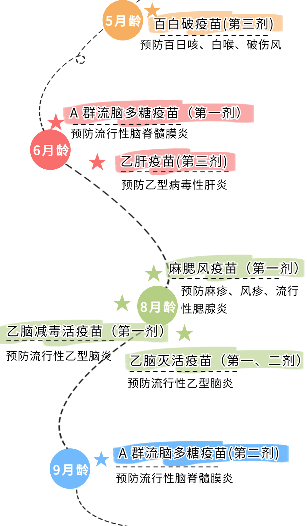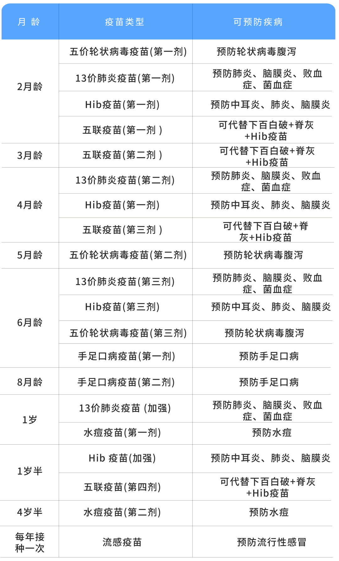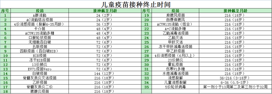 疫苗种类较多,婴幼儿青少年及青春期不同阶段疫苗终止接种最新时间表如下图。